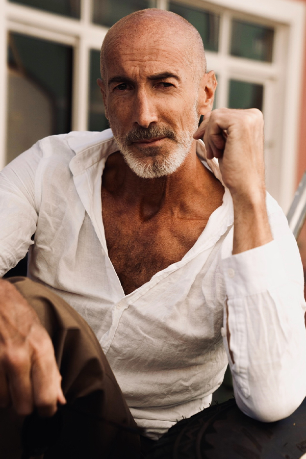 Altura: 1,86 | Camisa: 42 | Americana: 52 | Pantalón: 42 | Zapatos: 45 | Ojos: Verdes | Cabello: Calvo
